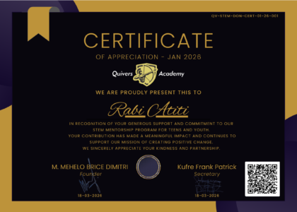 This is to certify that this certificate was issued by Quivers Academy STEM Program of